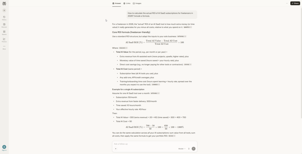 Perplexity changed my workflow overnight. Unlike a standard search engine, it doesn’t just give you links; it reads the links for you and summarizes the answer with citations.